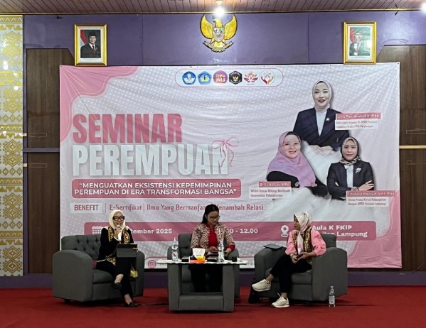 Hal itu disampaikan Ketua Fraksi PDI Perjuangan DPRD Provinsi Lampung, Lesty Putri Utami, saat menjadi narasumber dalam seminar bertajuk “Menguatkan Eksistensi Perempuan di Era Transformasi Bangsa” yang digelar Forum Pendidikan Kewarganegaraan (Fordika) Fakultas Keguruan dan Ilmu Pendidikan (FKIP) Universitas Lampung (Unila), Sabtu (20/9).